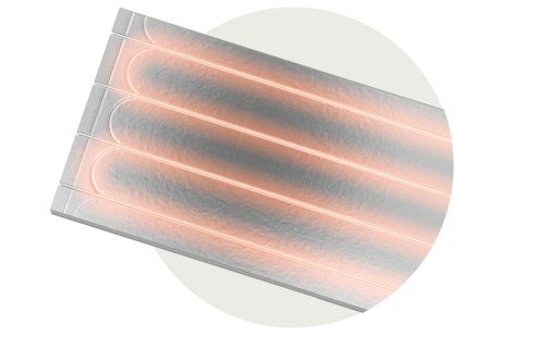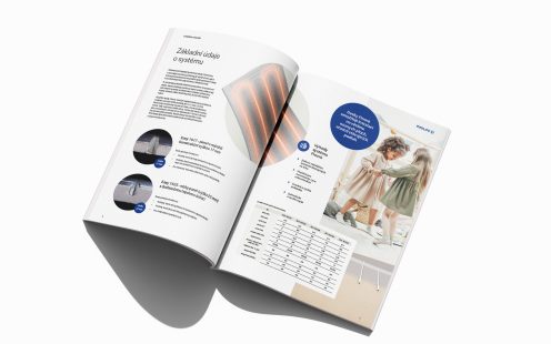 Rychlá reakce na změny teplotyDíky tenkým panelům systém rychle reaguje na změny nastavení teploty, dosahuje požadované teploty již za 45 minut, zatímco tradiční systémy mohou potřebovat až 8 hodin. |
